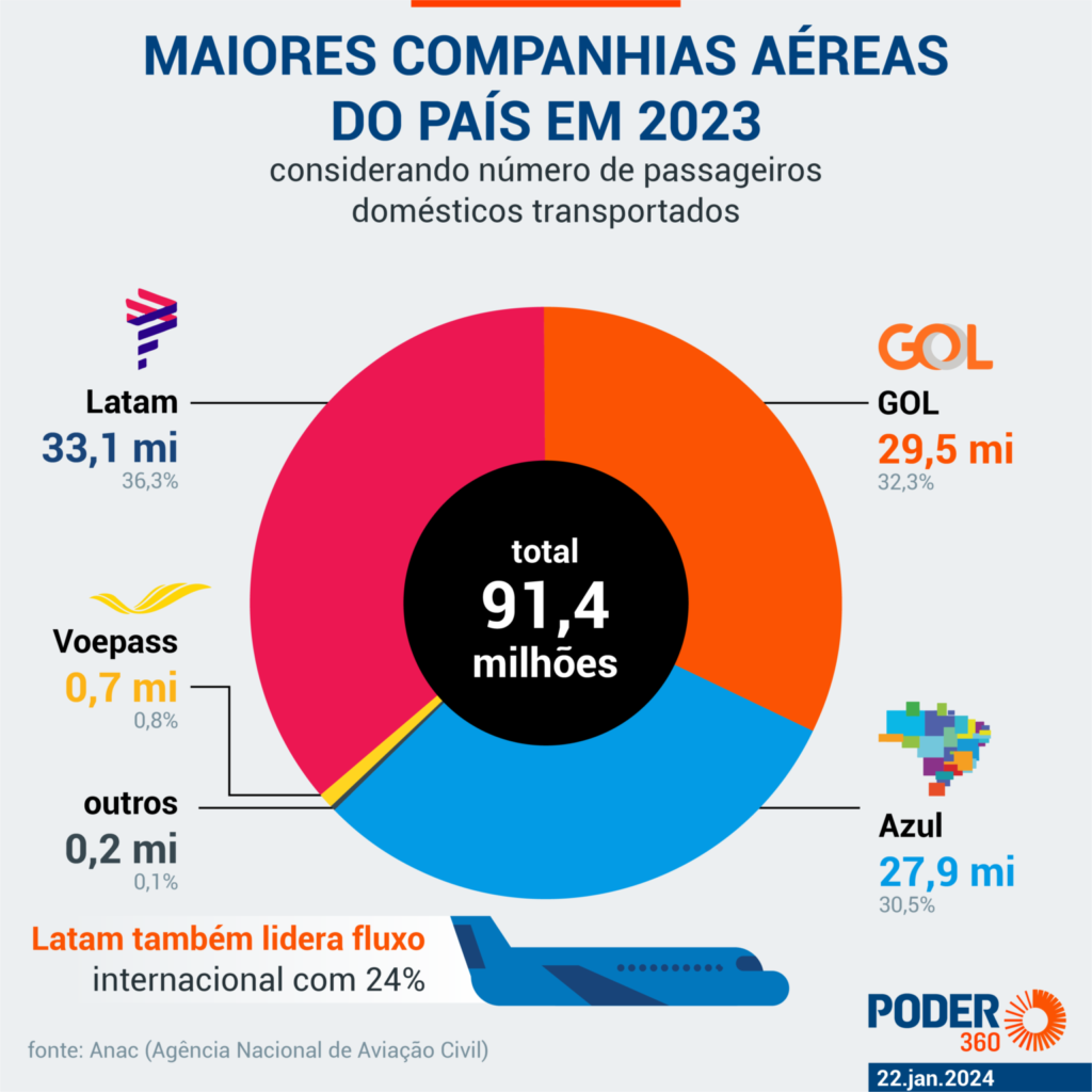Voepass tem parceria com a Latam e 0,8% do tráfego aéreo doméstico. Aérea é dona do…