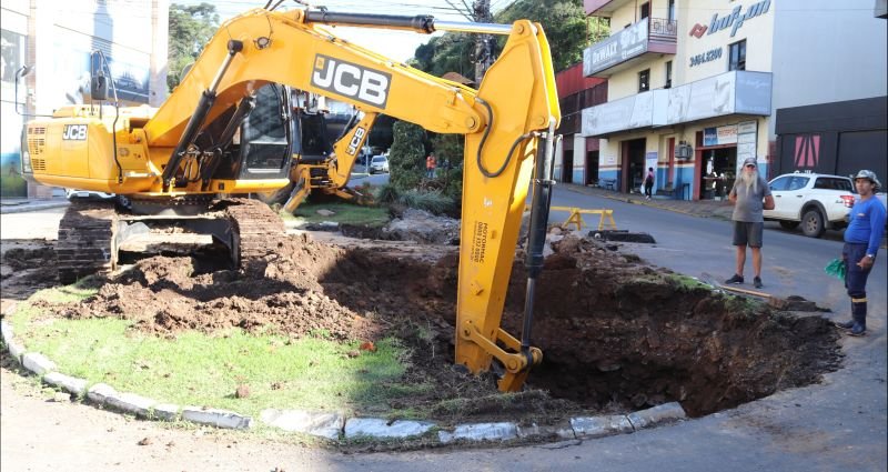 A Secretaria Municipal de Obras opera com máquinas no local para escavar o entorno danificado, liberando acesso à tubulação, que será substituída na sequência. O acesso à rótula será liberado assim que os trabalhos forem concluídos.