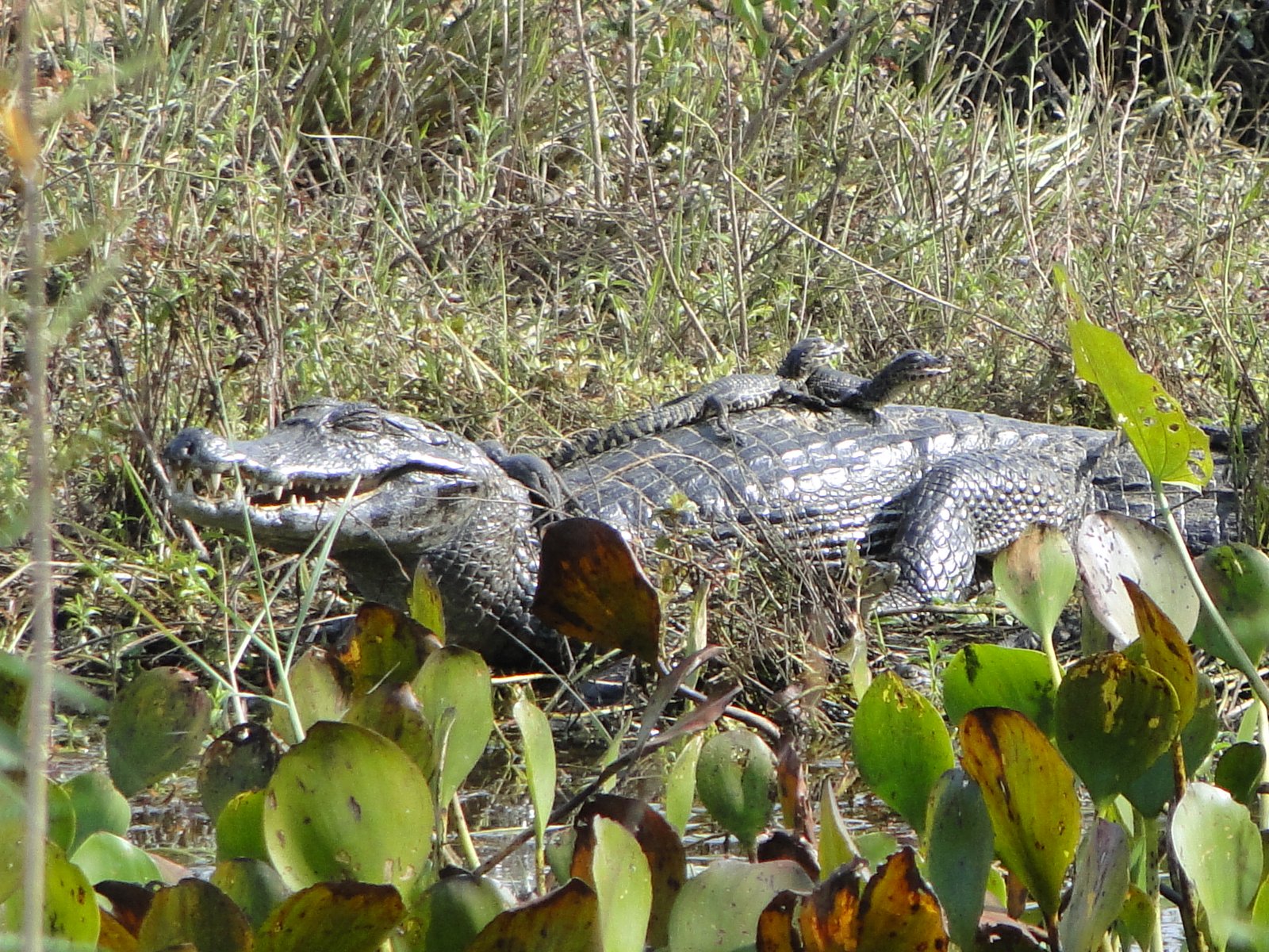 As planícies alagadas às margens da rodovia são o verdadeiro habitat de jacarés, capivaras, garças, veados, gaviões, martins -pescador e outros animais da selva. Damos a sorte de topar com uma família de capivaras que dominam o local e desfilaram atravessando a Trasnpantaneira.